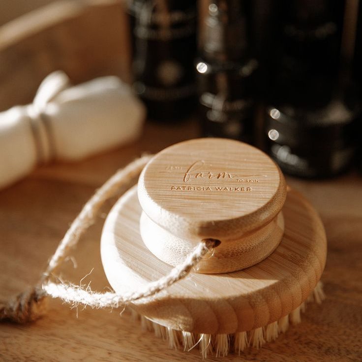 A dry brush with natural stiff bristles and a wooden handle designed for body exfoliation and massage. Stimulates lymphatic drainage, clears dead skin, reduces cellulite, and tones the body.